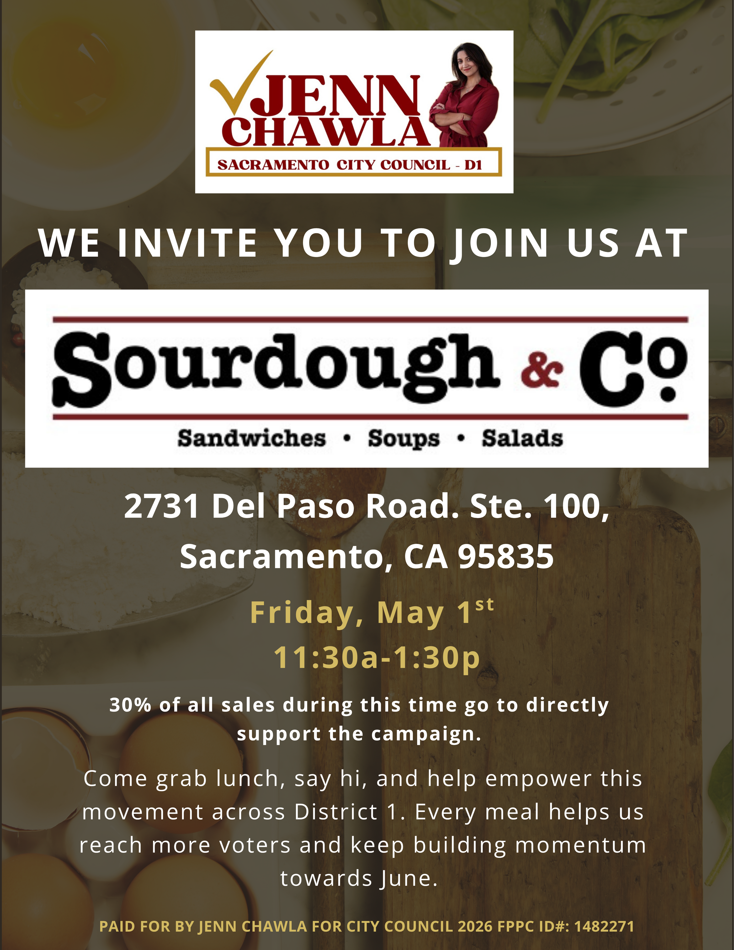 Come grab lunch, say hi, and help power this movement across District 1. Every meal helps us reach more voters and keep building momentum toward June.